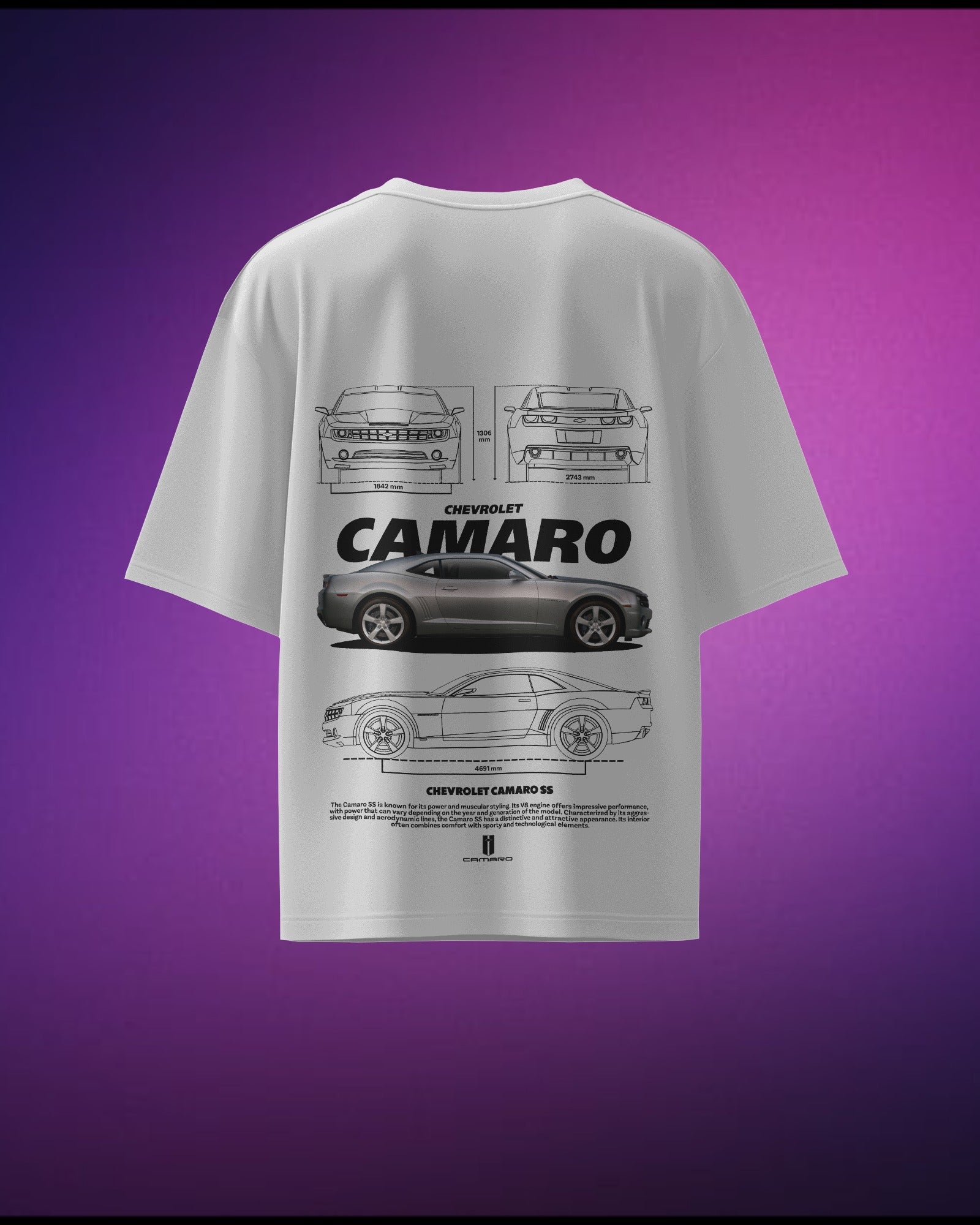 The Chevrolet Camaro is a symbol of American muscle, and this T-shirt captures its bold and aggressive design. Made from 100% pure cotton high-quality fabric by Cruize Wear, it’s soft, durable, and perfect for fans of classic and modern muscle cars. Whether you're at a car show or just love powerful rides, this T-shirt is a must-have.