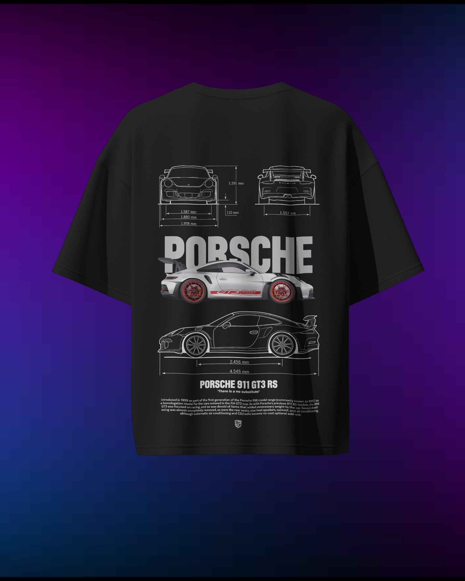 The Porsche GT3 RS is a track beast, and this T-shirt captures its raw power and precision. Made from 100% pure cotton high-quality fabric by Cruize Wear, it’s lightweight, breathable, and perfect for fans of high-performance cars. Whether you're at the track or just love fast rides, this T-shirt is a must-have.