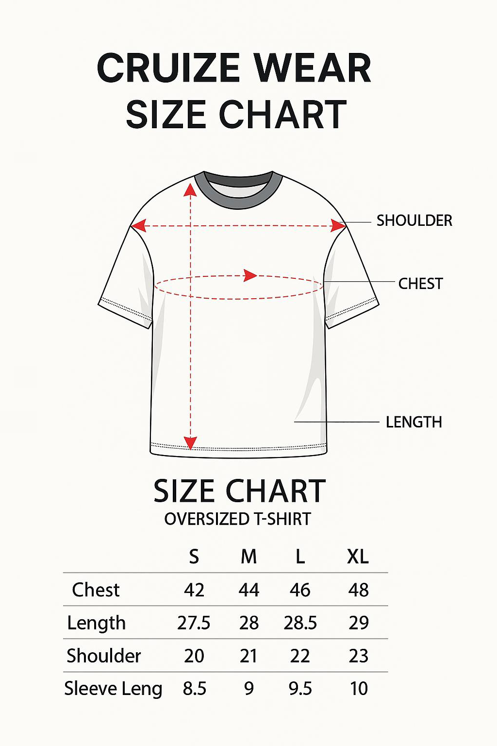 Size Chart (Oversized Tees) - In Inches :