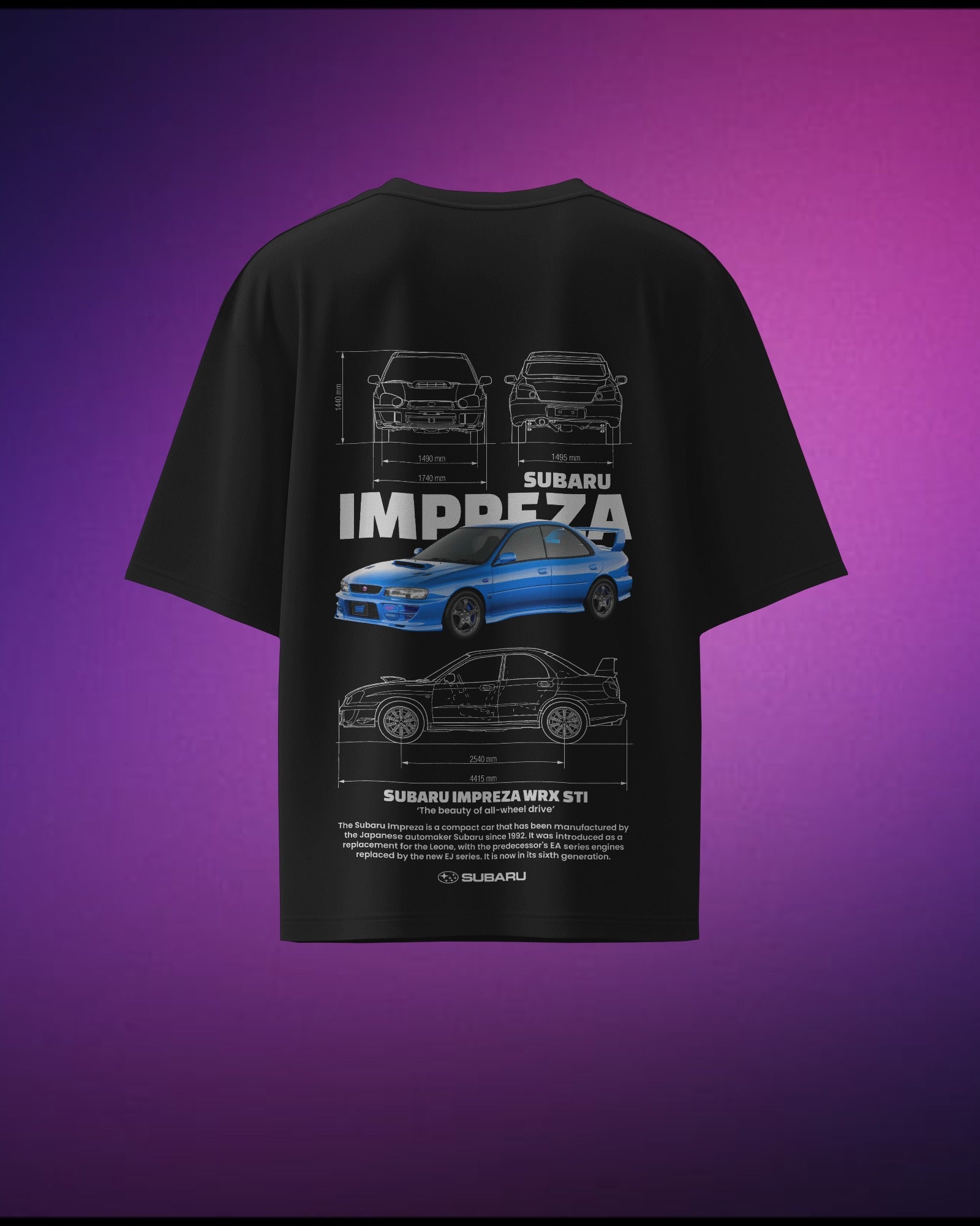 The Subaru Impreza is a rally legend, and this T-shirt celebrates its rugged and sporty design. Made from 100% pure cotton high-quality fabric by Cruize Wear, it’s soft, durable, and perfect for fans of performance cars. Whether you're a rally enthusiast or just love sporty designs, this T-shirt is a must-have.
