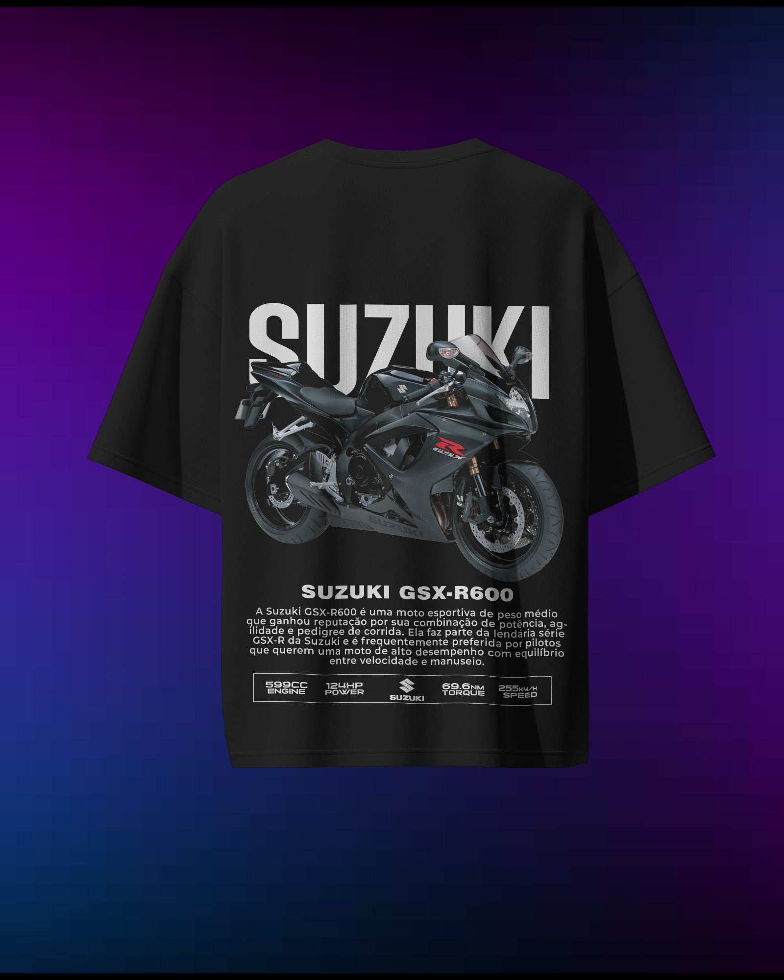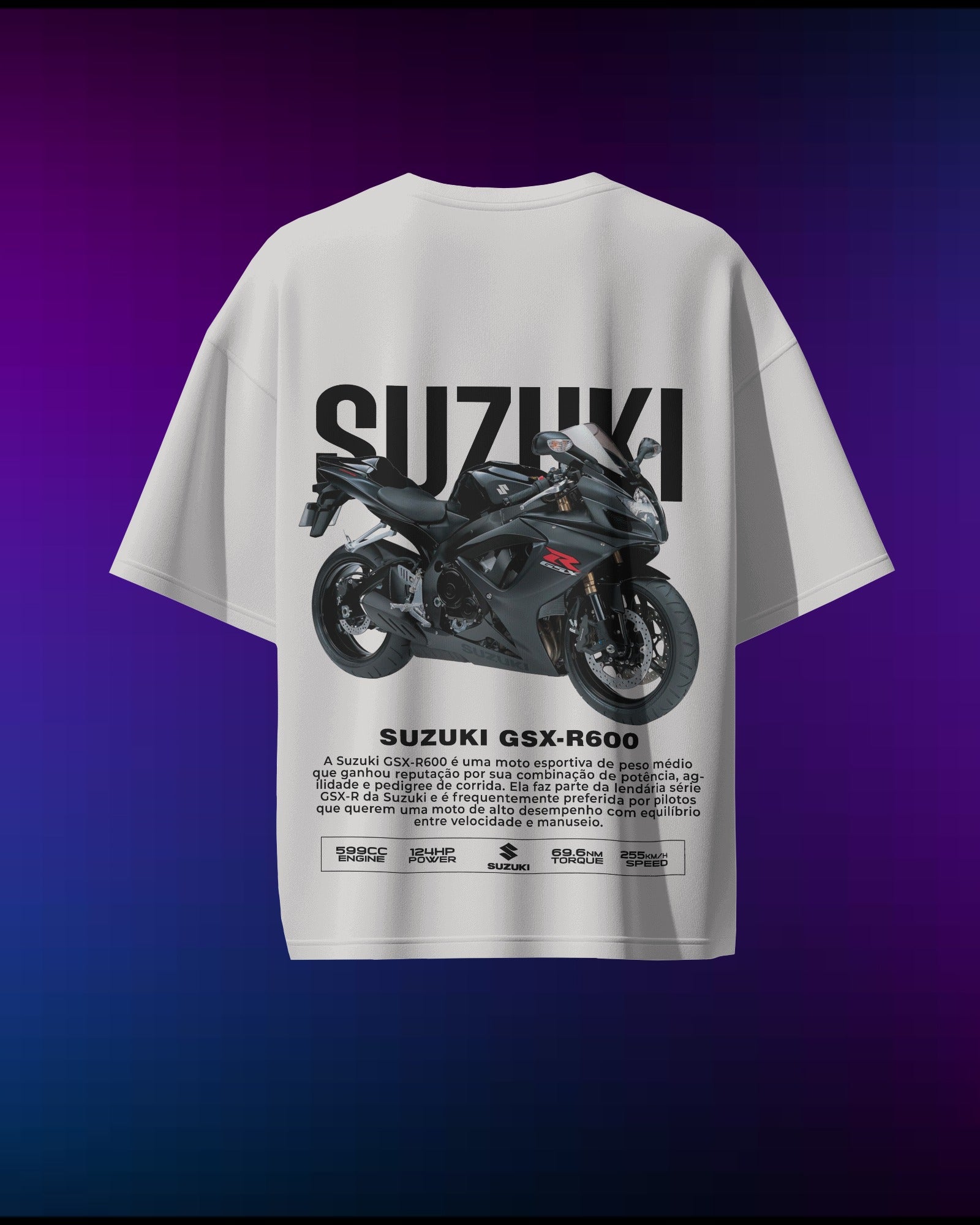 The Suzuki GSX-R600 is a track legend, and this T-shirt pays tribute to its raw power and precision. Made from 100% pure cotton high-quality fabric by Cruize Wear, it’s lightweight, breathable, and perfect for fans of high-performance bikes. Whether you're at the track or just love fast rides, this T-shirt is a must-have.